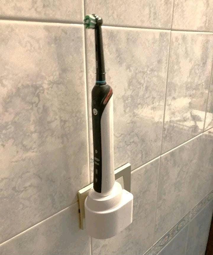 Our Electric Brush Charger Holder is a practical and convenient accessory in the bathroom. Printed on our Bambulab X1C printers in high strength PLA it's designed for easy mounting installation onto your existing wall outlet.