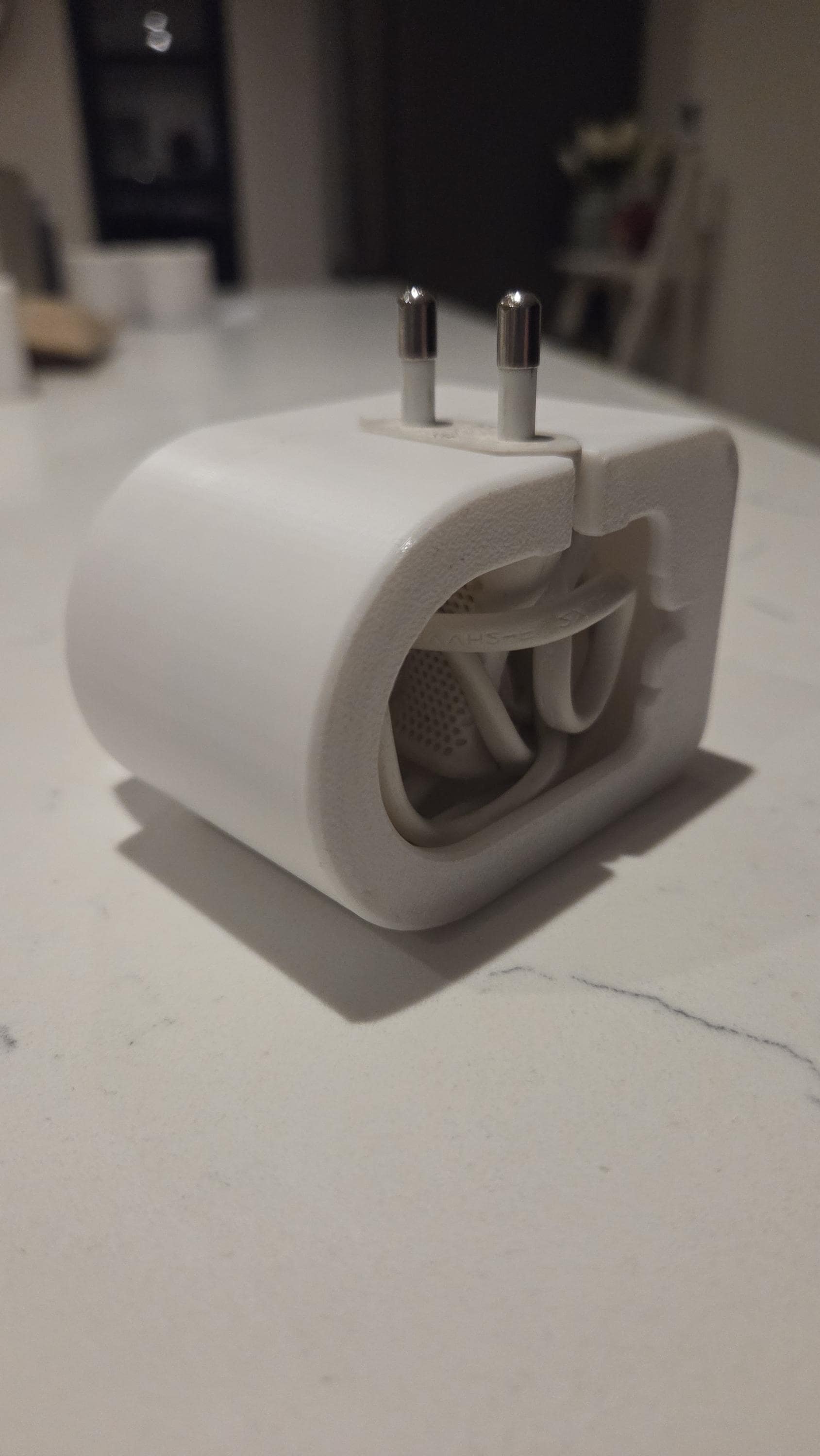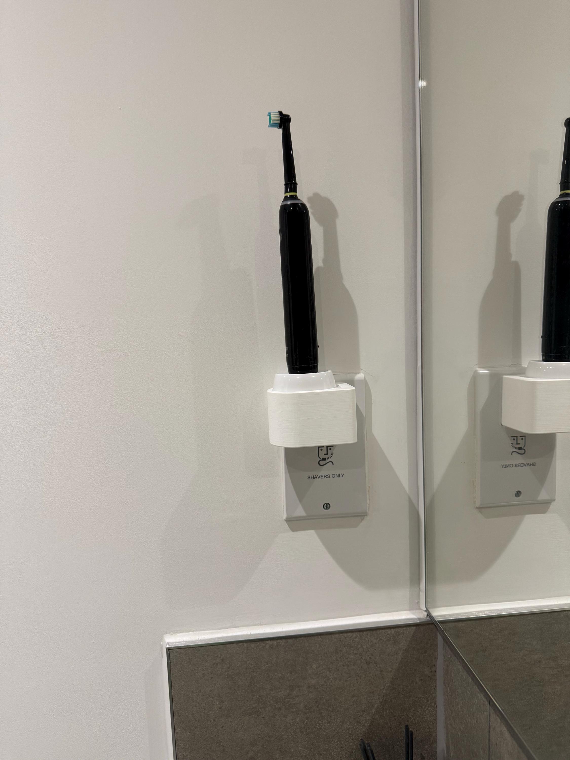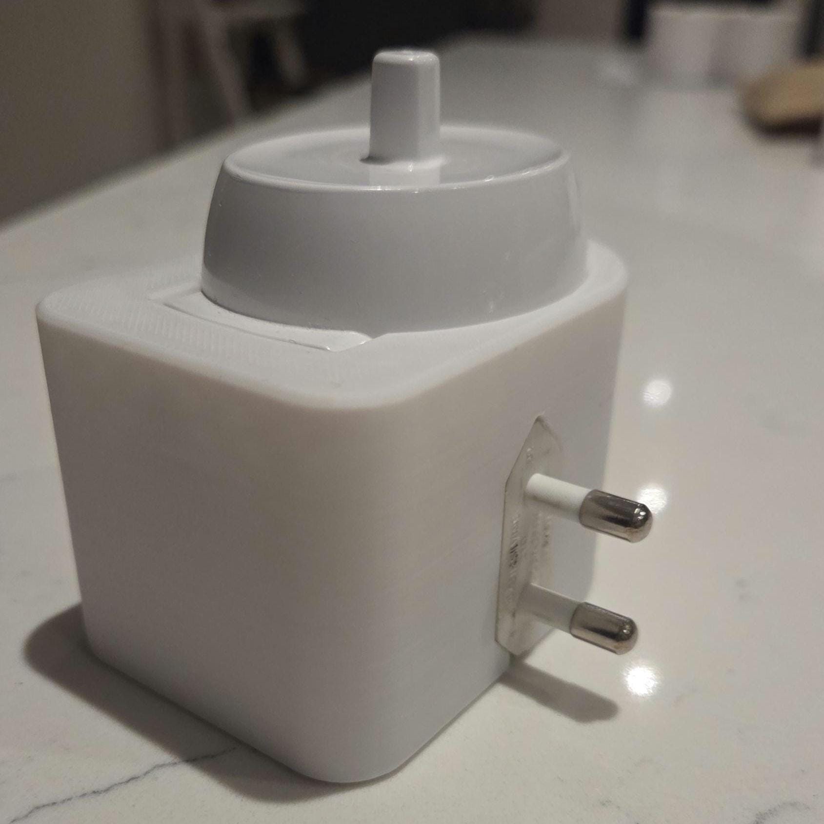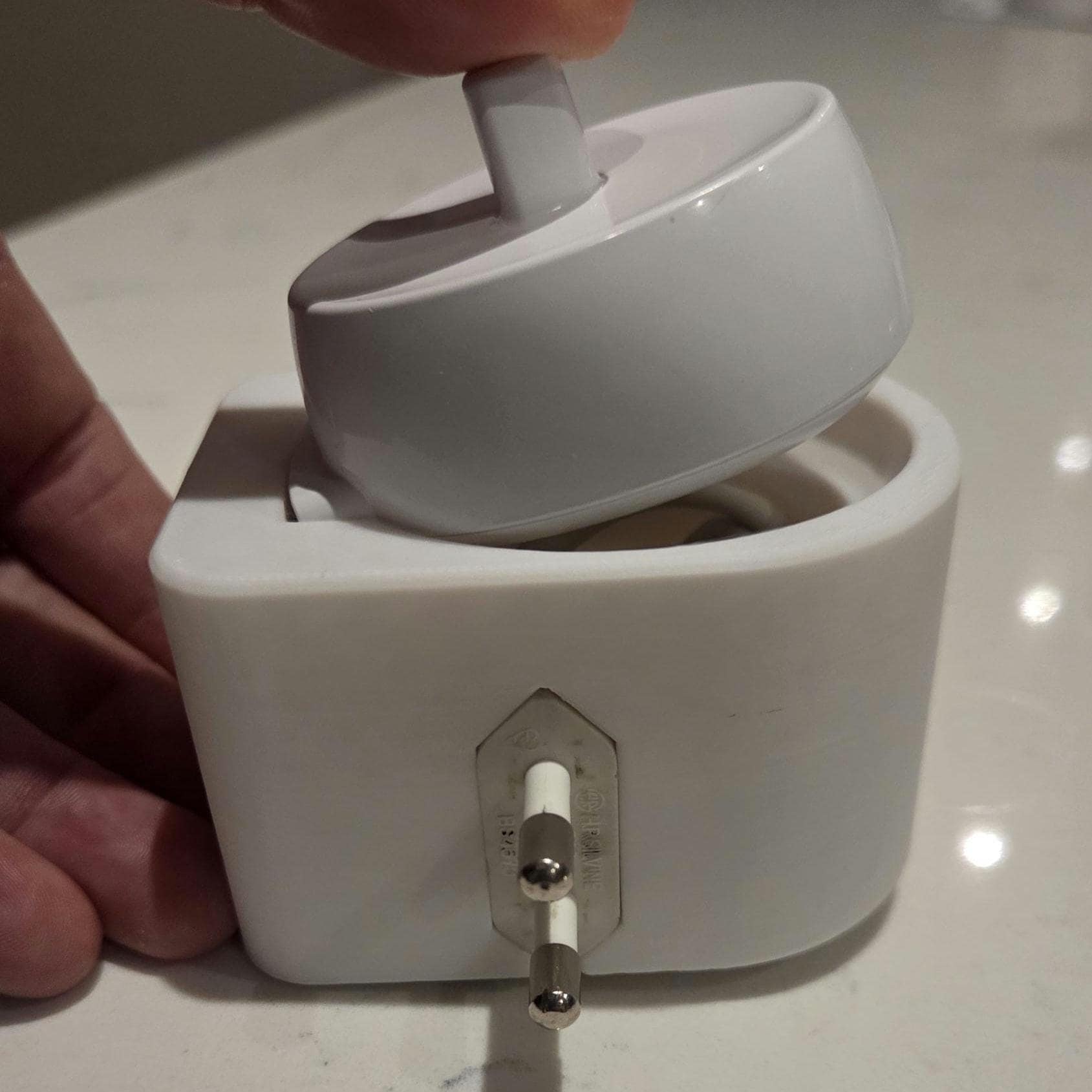 If when using the 3D holder the charger sags out of the socket then you will need to adjust/spread the pins on your Oral-B 2 pin adaptor to grip into your wall socket (or use a small piece of double sided nano/tape to adhere the 3D print to the face of your wall socket). This occurs when your wall socket is worn or loose and not an issue with the 3D print. This only happens on a very small number of sockets. Returns will not be accepted for this reason.