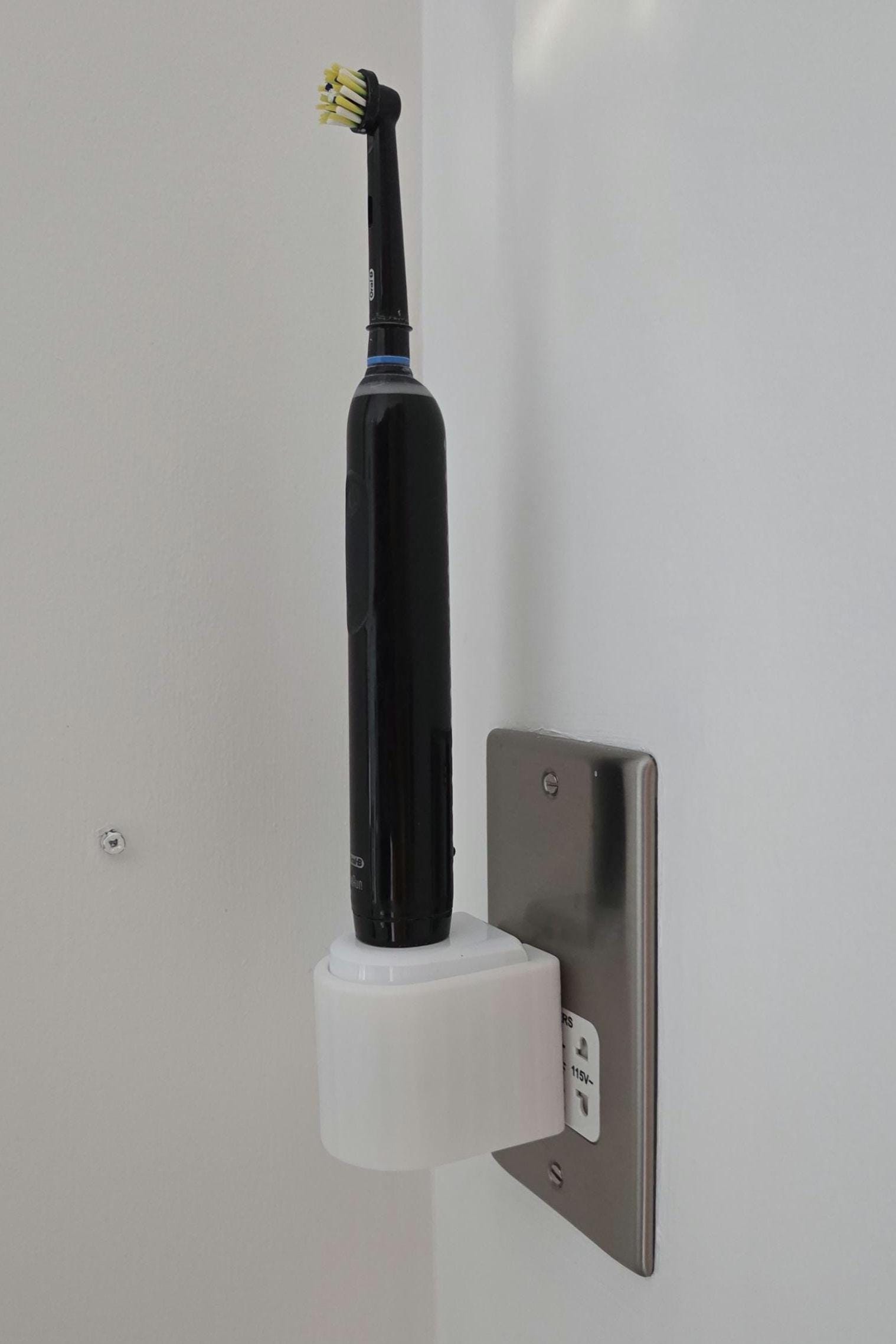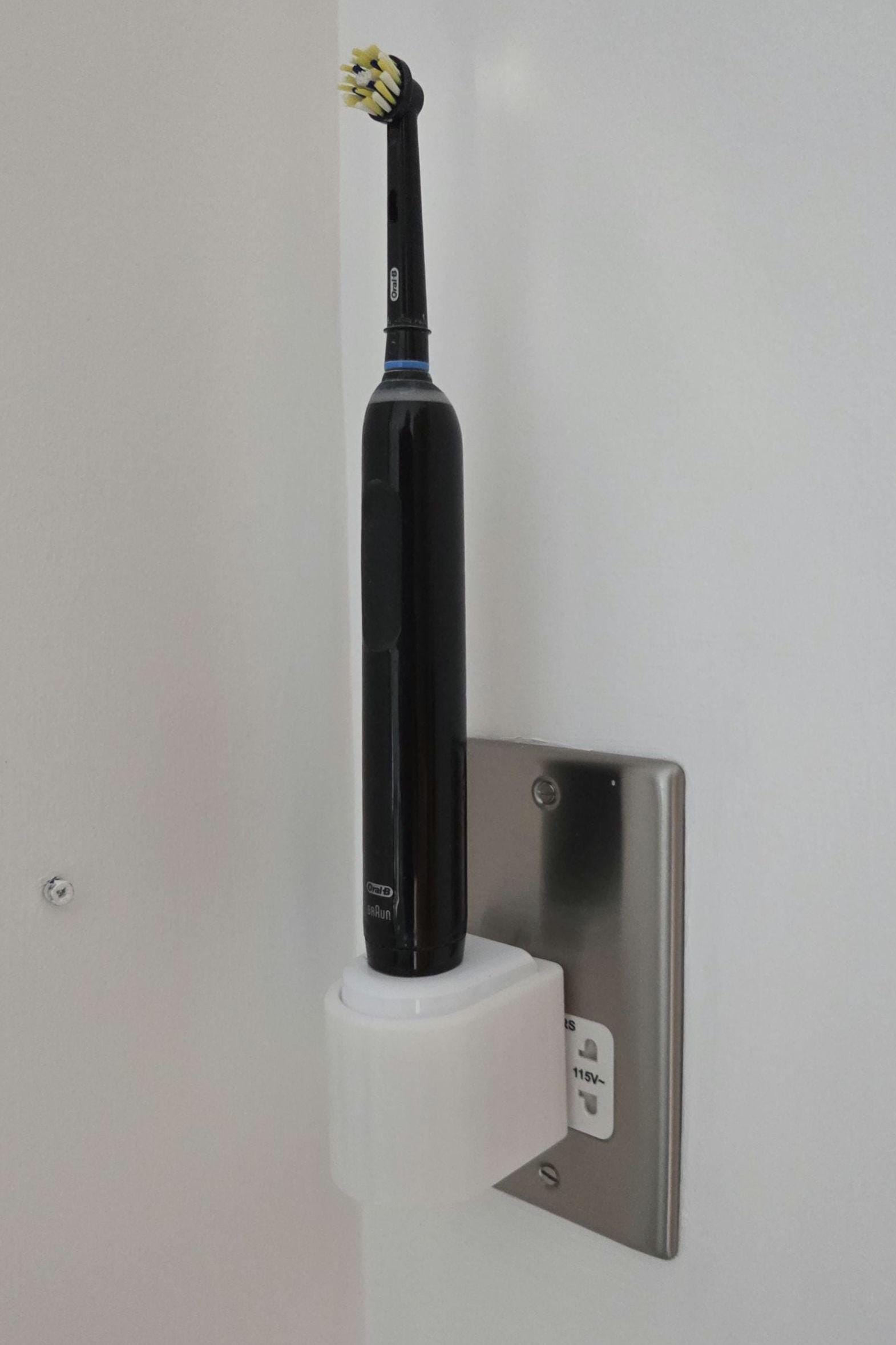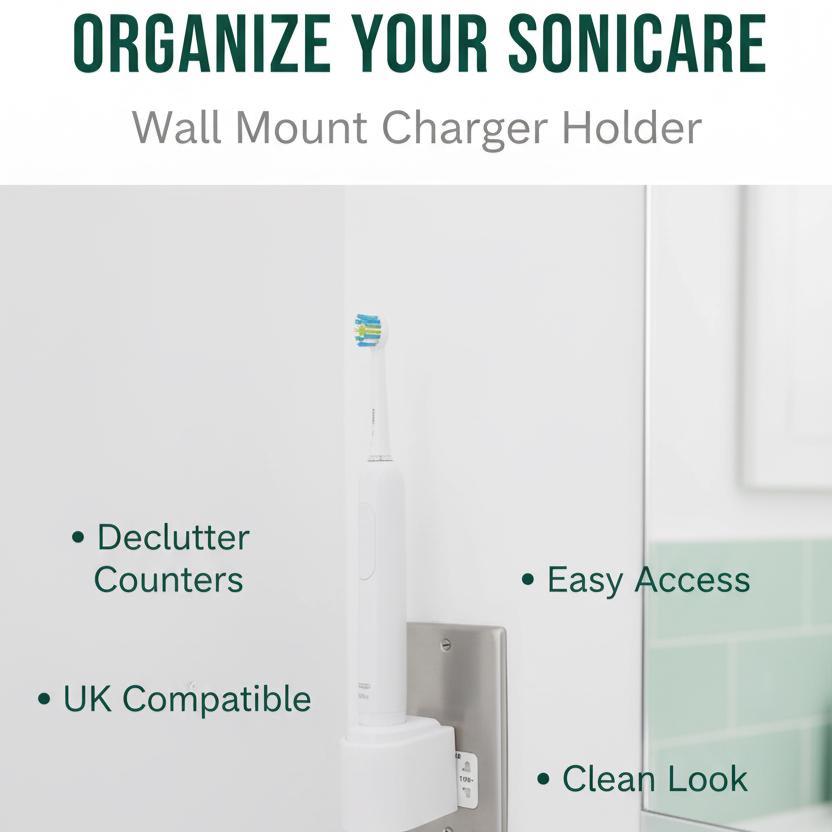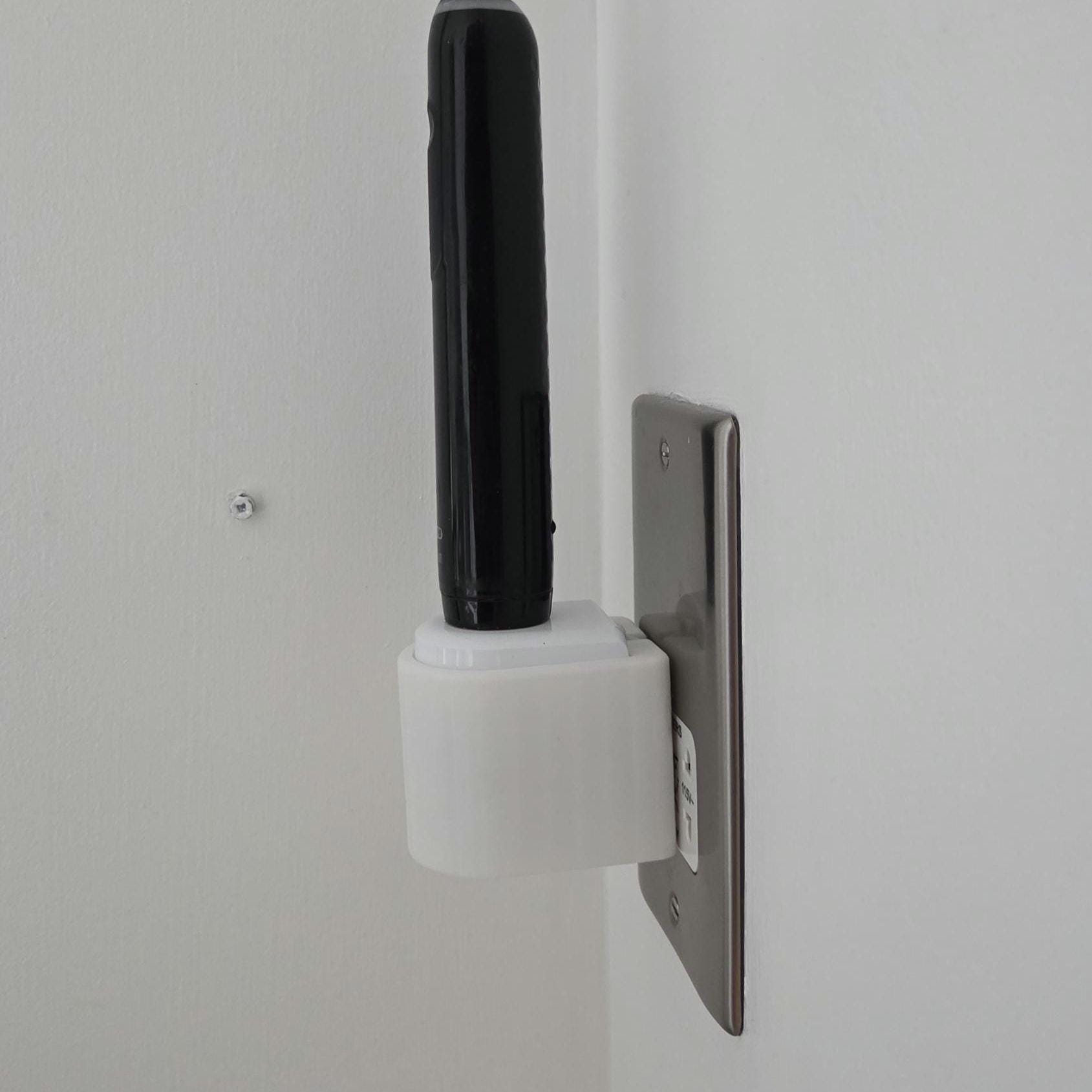 Keeps your bathroom looking neat and your toothbrush charger within easy reach. Simplely push-fit your existing charger into the mount and plug in - This fits UK sockets that have the charger pin holes aligned vertically. If your wall socket has horizontal pin holes, please see my other auction for the Horizontal Version.