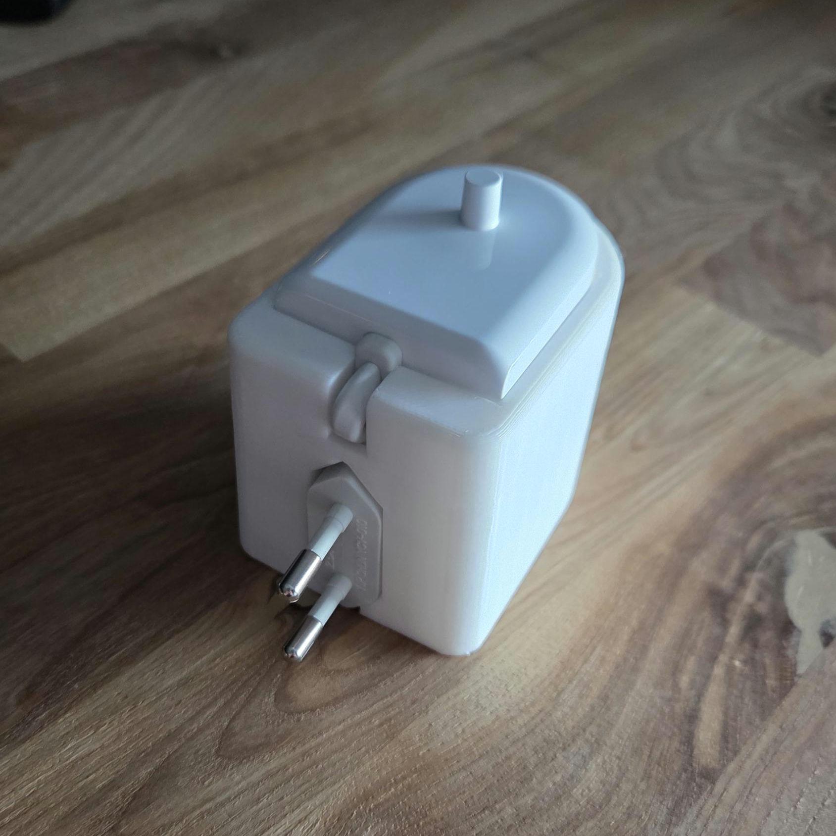 PLEASE NOTE: If when using the 3D holder the charger sags out of the socket then you will need to adjust/spread the pins on your Sonicare 2 pin adaptor to grip into your wall socket (or use a small piece of double sided nano/tape to adhere the 3D print to the face of your wall socket). This occurs when your wall socket is worn or loose and not an issue with the 3D print. This only happens on a very small number of sockets. Returns will not be accepted for this reason.