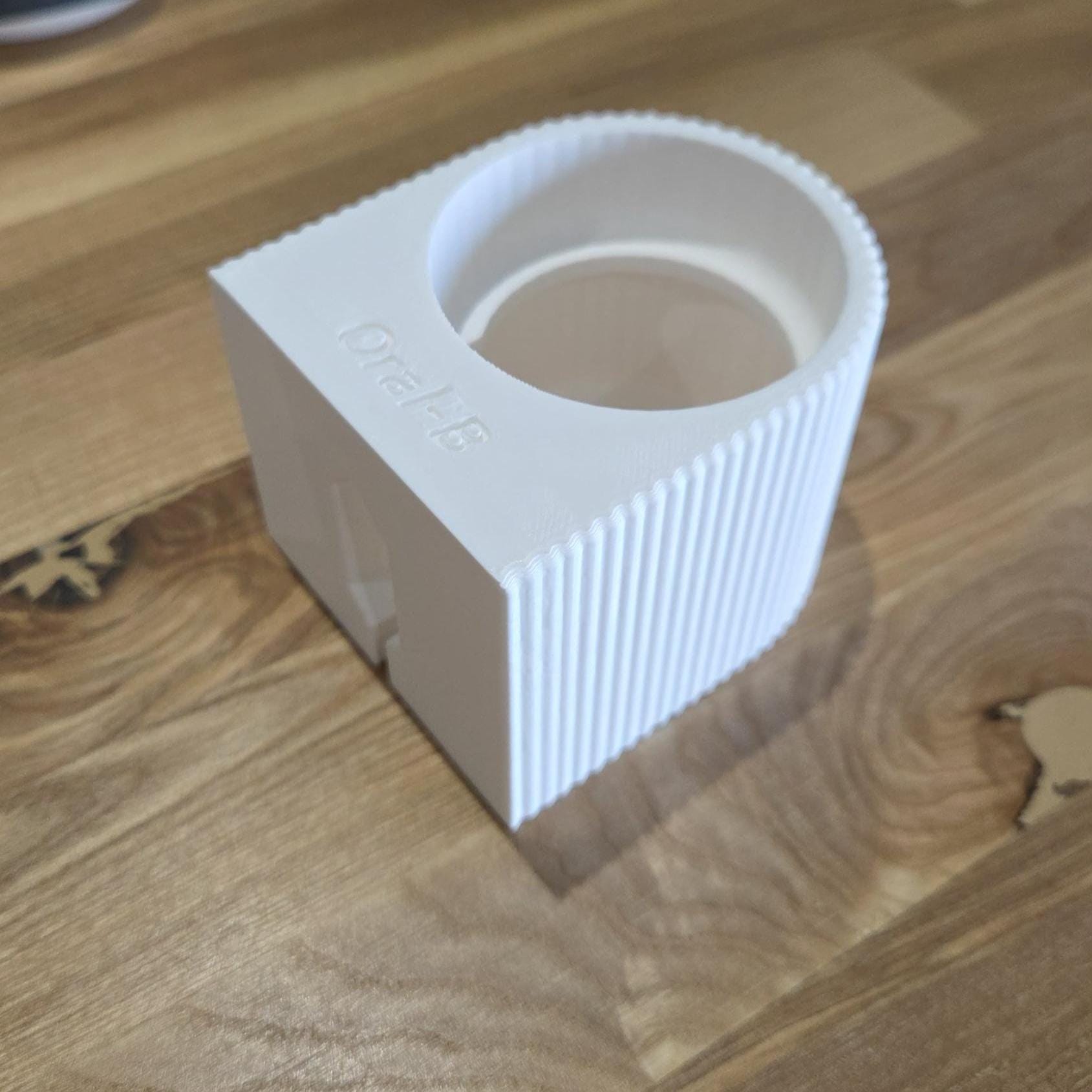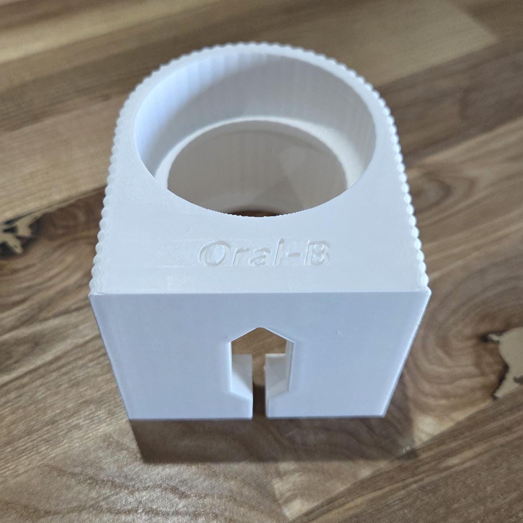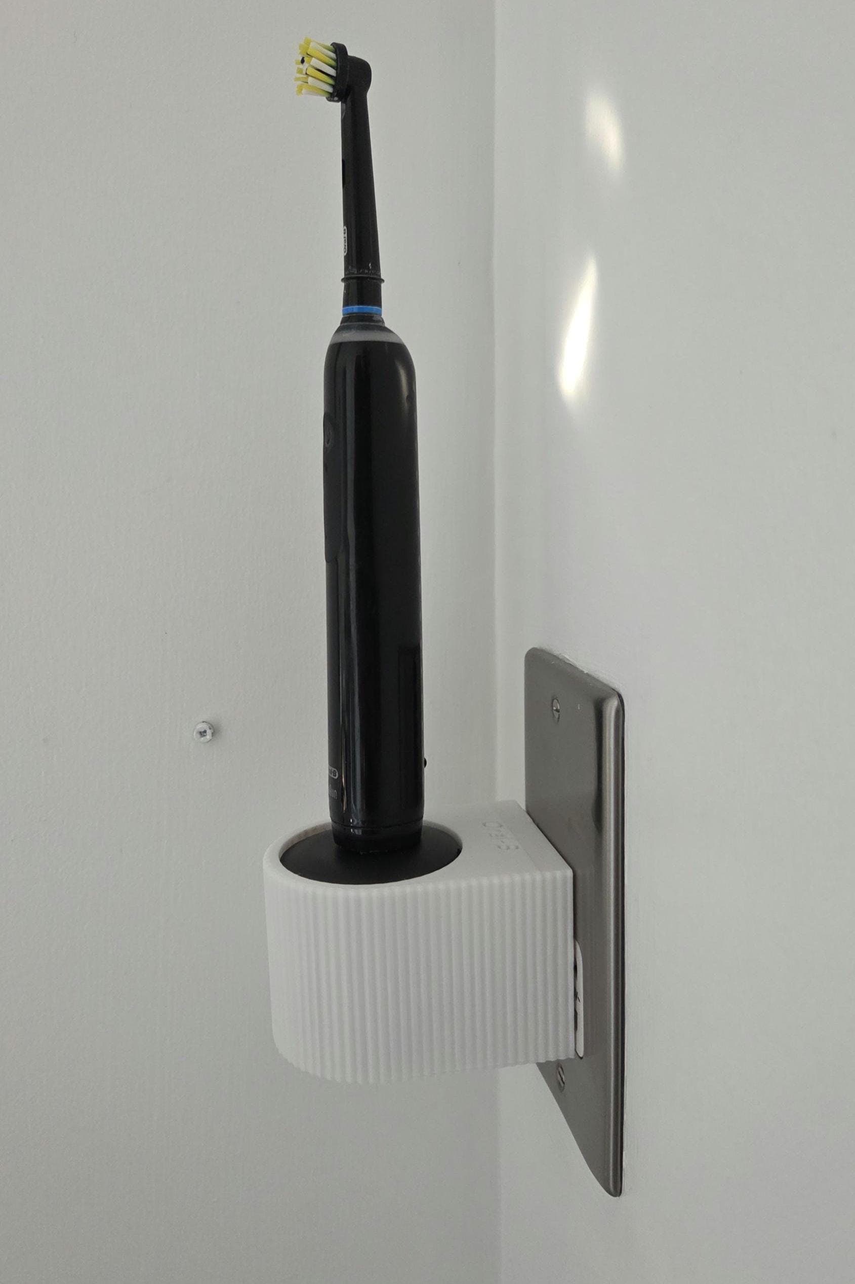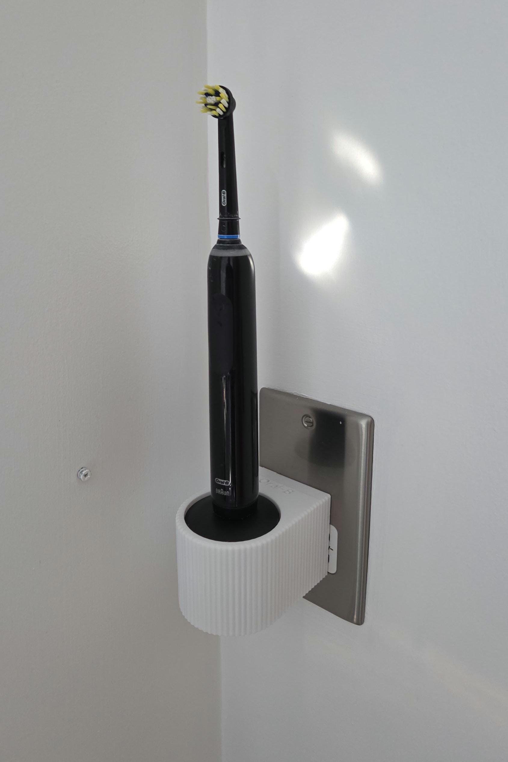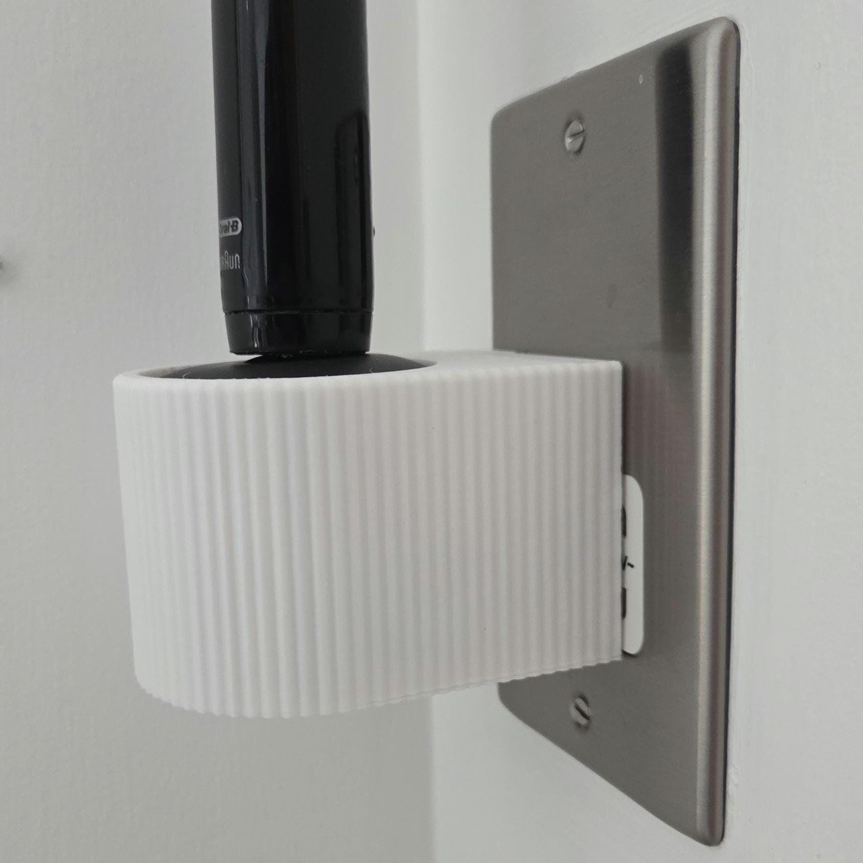 Printed on our Bambulab X1C printers in high strength PLA it's designed for an easy wall mounting installation onto your existing wall outlet, with a ridged edge design and Oral-B lettering on the top face, it's both contemporary and stylish to fit into your bathroom.