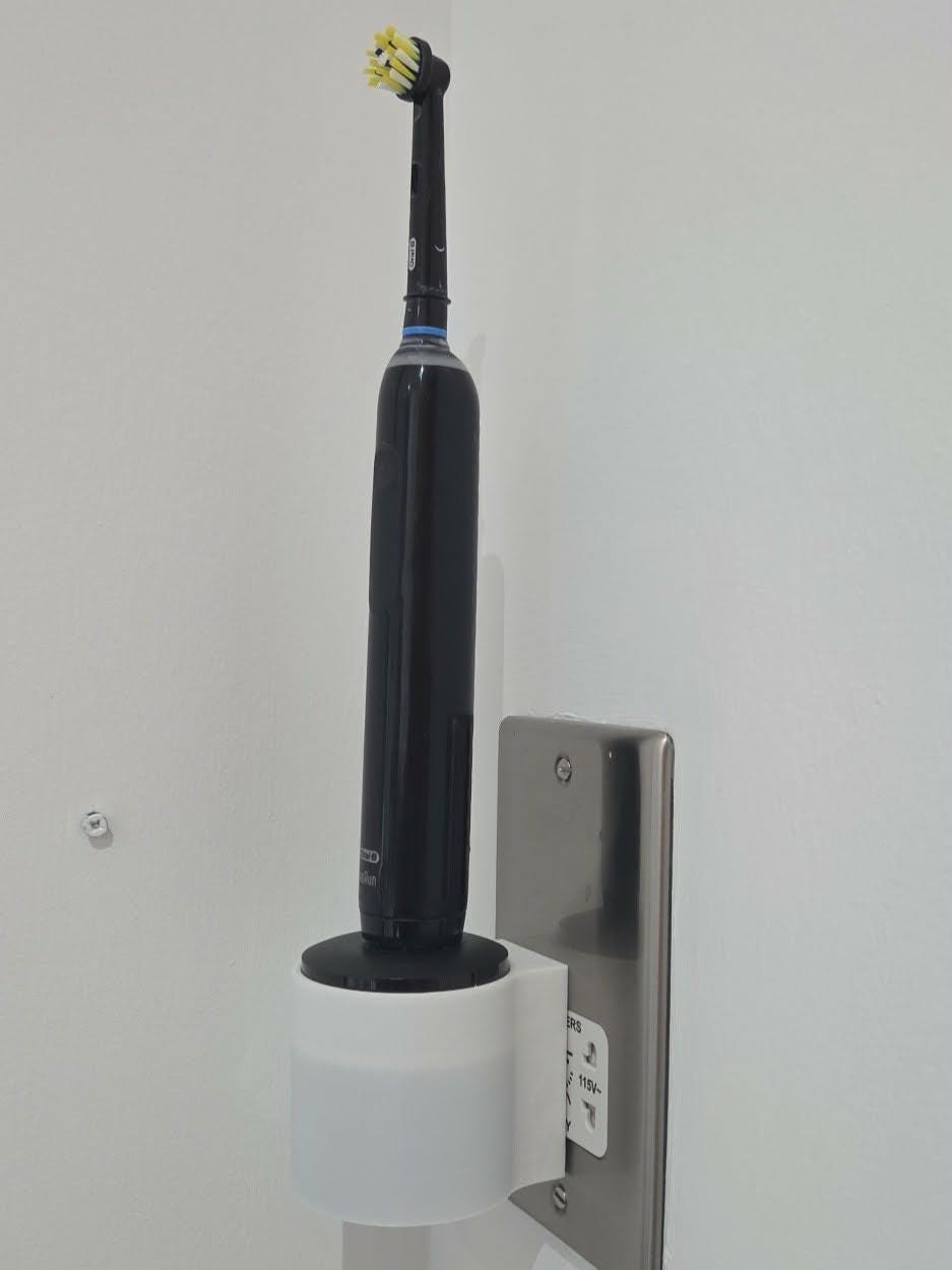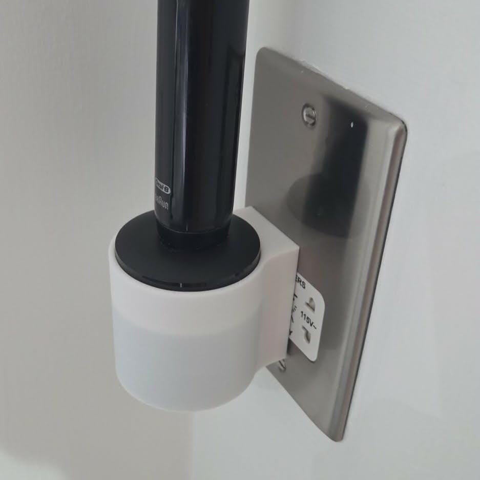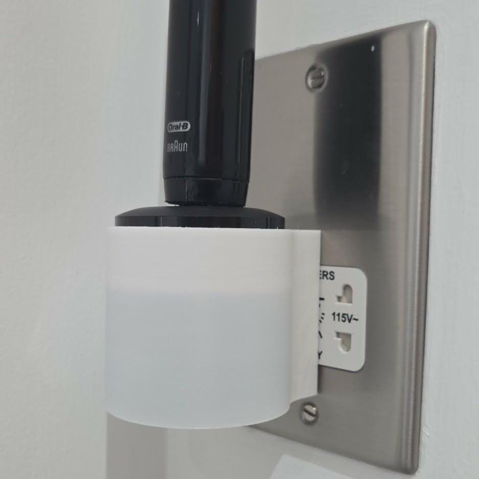 Printed on my Bambulab X1C printer in high strength PLA it's designed for easy wall mounting installation onto your existing wall outlet, with a ridged edge design and Oral-B lettering on the top face, it's both contemporary and stylish to fit into your bathroom.