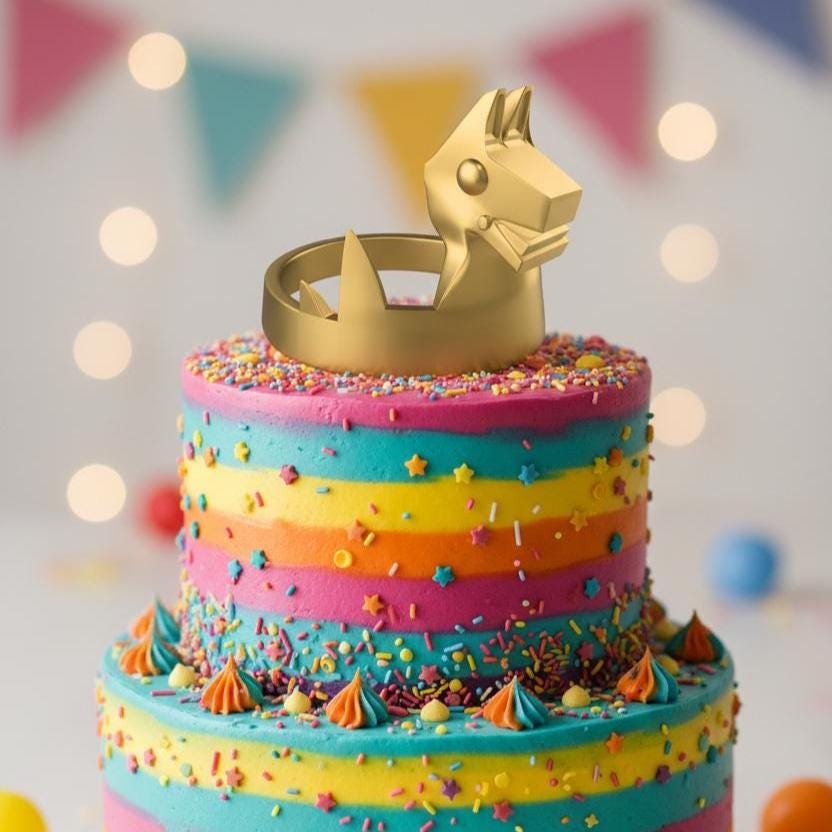 Our 3D Printed Golden Llama Crown is great as a bold and playful piece of handmade 3D art. Whether displayed on a shelf, used as a cake topper, or worn for a photoshoot or event, this crown shines with golden charm.
