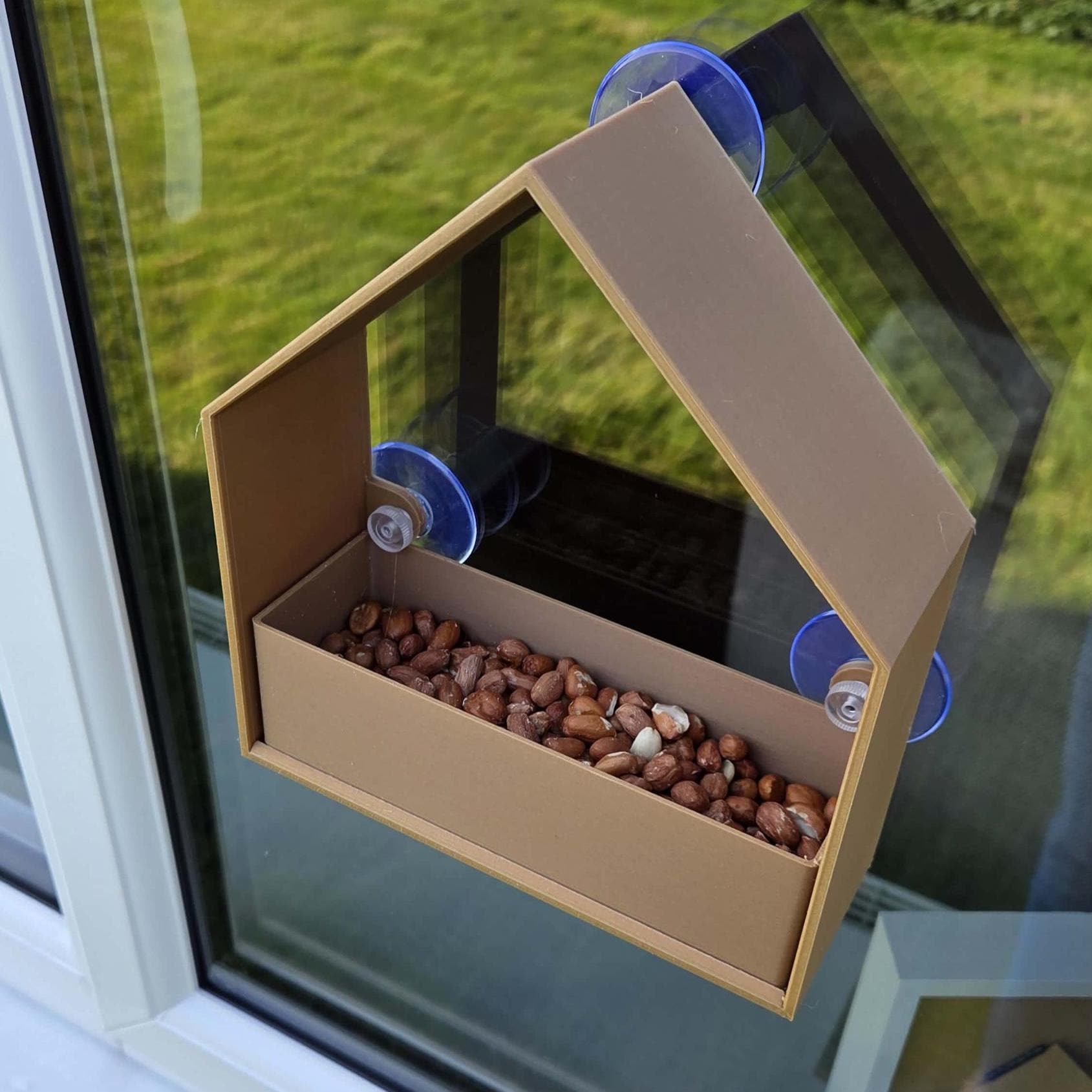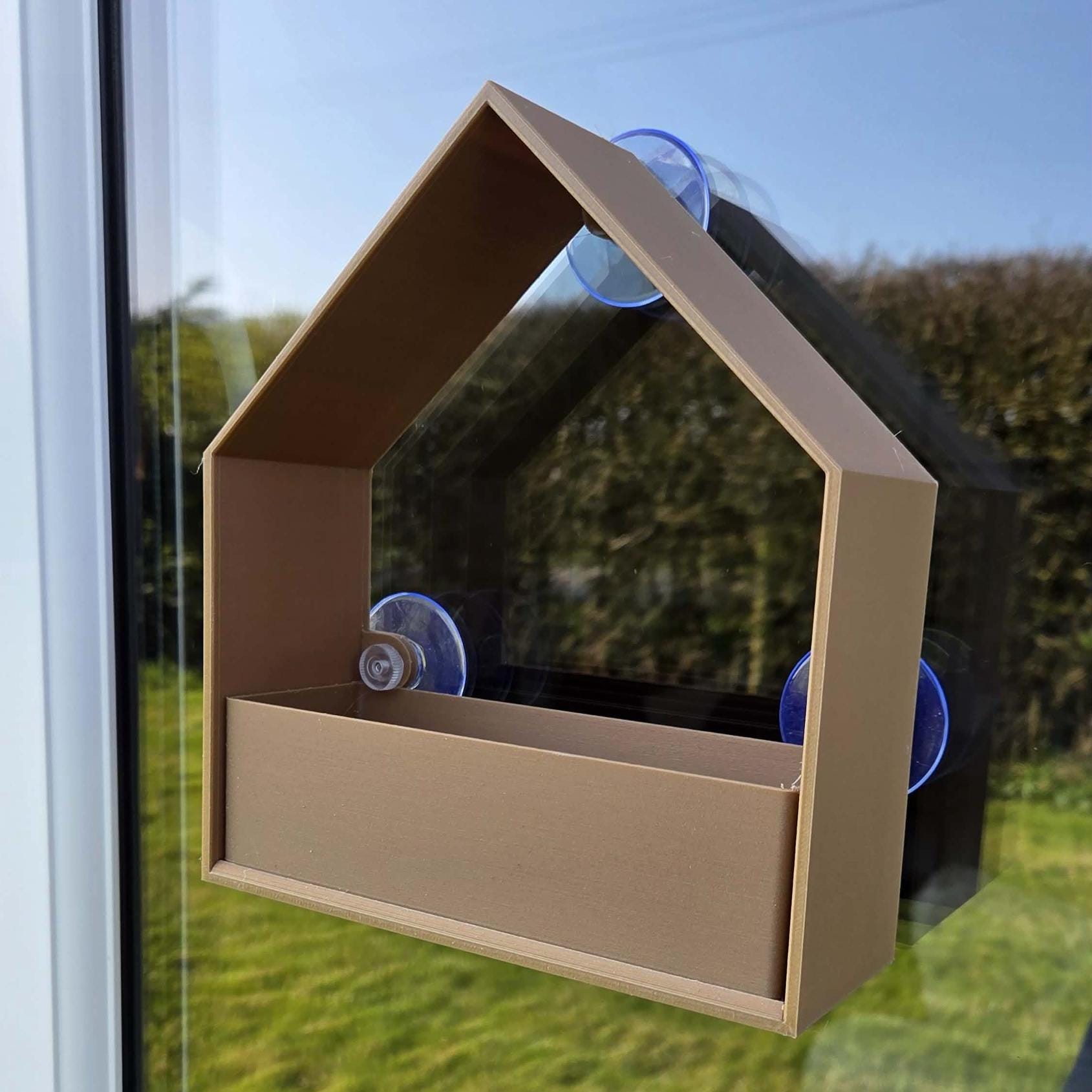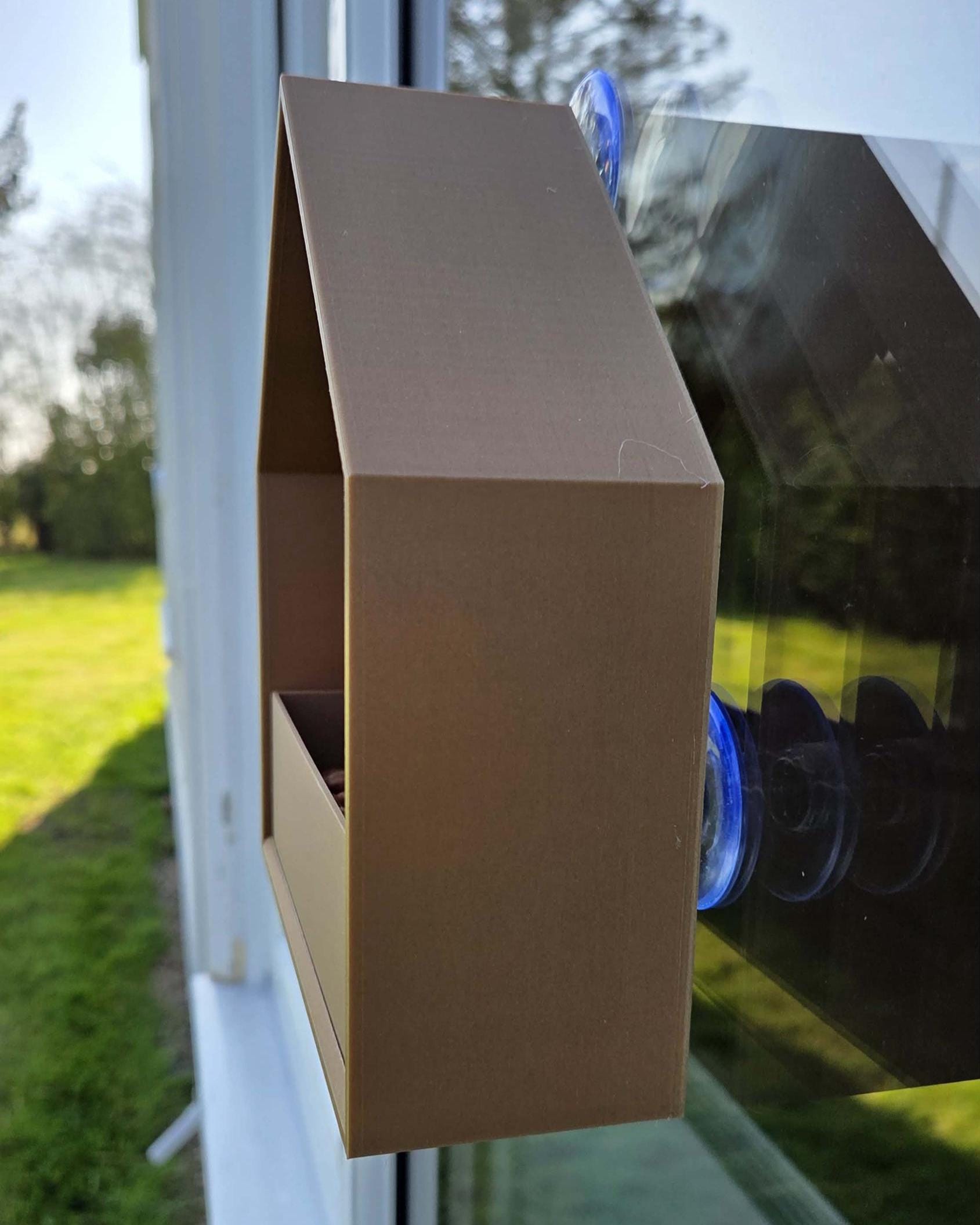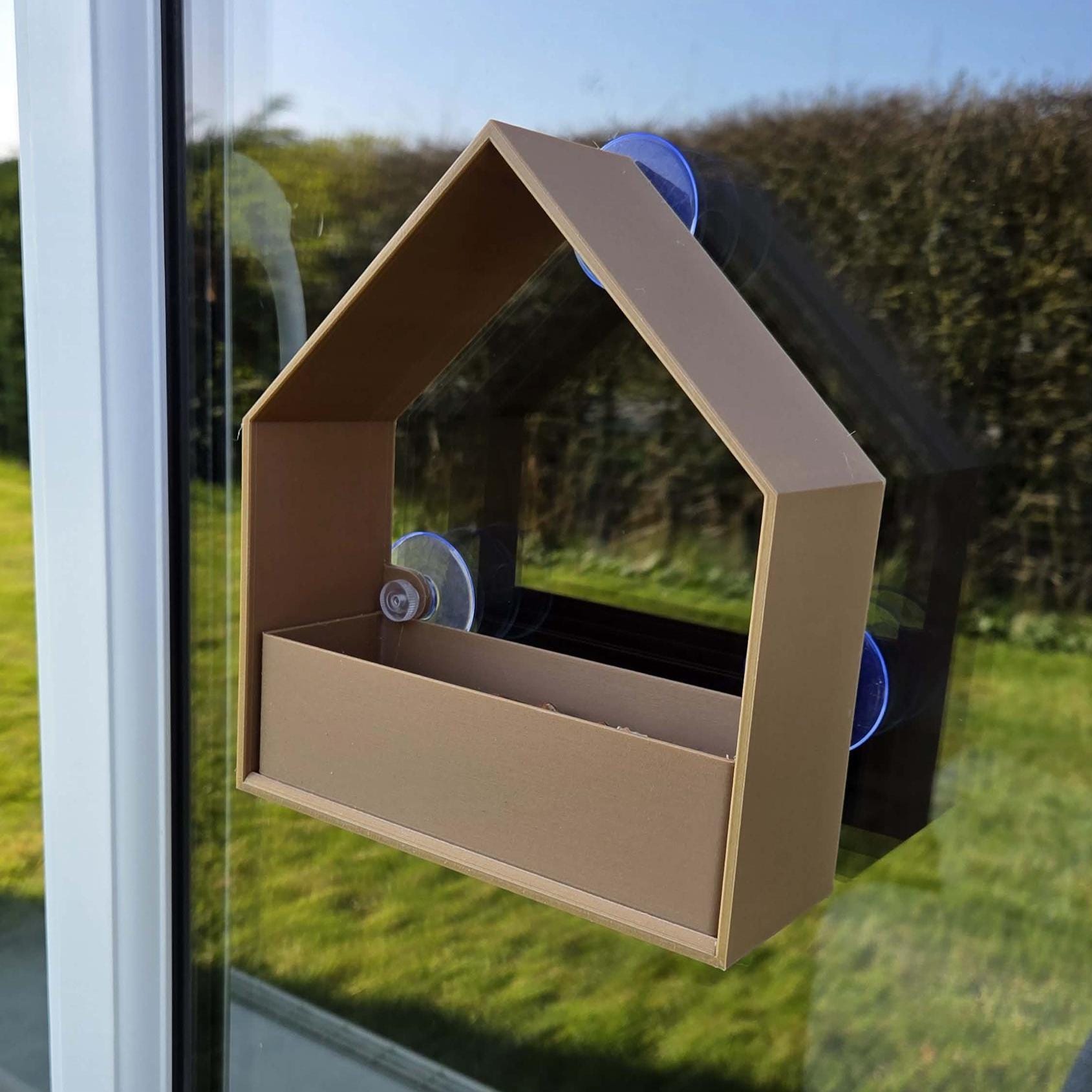 A great way to see the birds visiting your garden with this window mounted peaked roof bird feeder station.